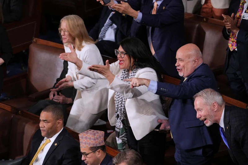 除了这一幕,当特朗普谈及好意思国政府在委内瑞拉和中东的军事动作时,众议员伊尔汗·奥马尔和拉希达·特莱布高声质问并离开议事厅以示抗议。