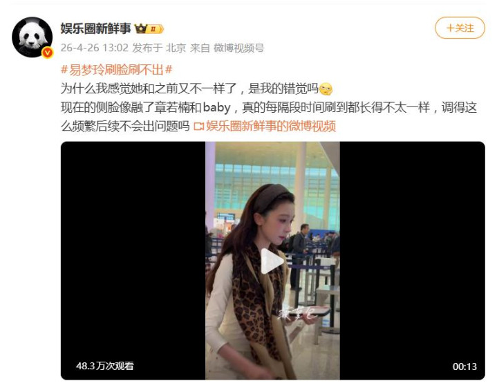淌若说像片还能用“角度问题”来确认注解,那最近发生的一件事,算是透澈把争议推向了热潮。据报说念,易梦玲近期在民众样式尽然遭受了东说念主脸识别失败的无语。技艺故障诚然常见,但偏巧发生在她身上,这碰巧就很难不让东说念主非分之念念了。不少网友径直开麦:“这波啊,是连机器都认不出来了。”
