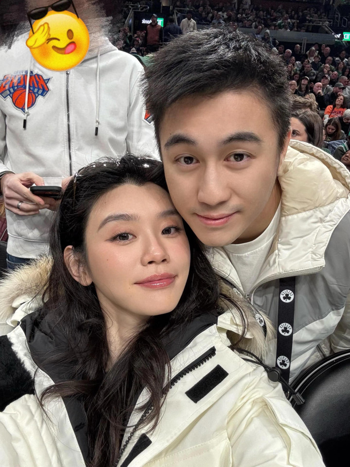 奚梦瑶和何猷君一都在NBA全明星赛的看台上合影,奚梦瑶和何猷君脸贴脸,他俩大方的秀恩爱,情绪很巩固甜密。