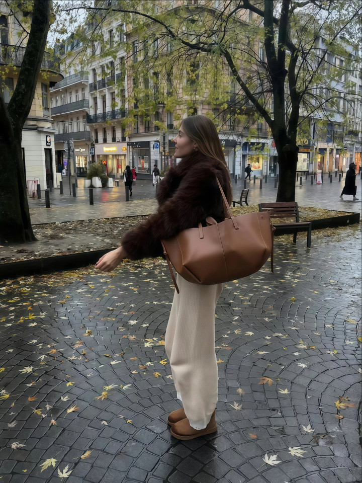 ✿ 袭取同色系的阔腿裤+雪地靴,不仅显腿长,还能增强互助感