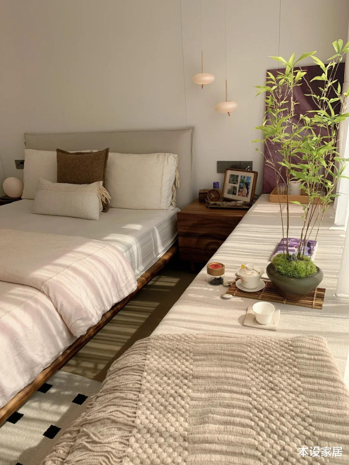 飘窗铺上软垫,边缘里的红不雅音竹正舒展着枝杈,当然的肌理、布艺的柔嫩和光影的诗意交汇,每一次躺卧王人是与调整感的相拥,极致荒疏。