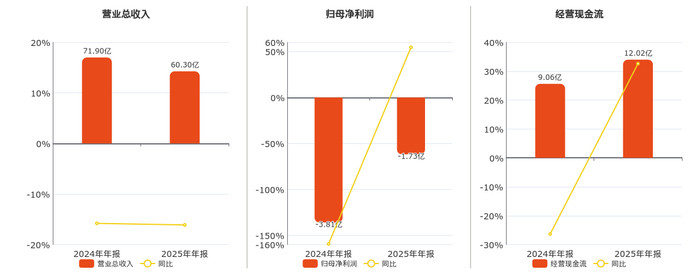 公司交易总收入为60.30亿元,较旧年同呈报期交易总收入减少11.59亿元,同比拟旧年同时下落16.12%。归母净利润为-1.73亿元,在已清晰的同行公司中排行第34。指标四肢现款净流入为12.02亿元。