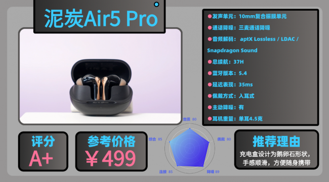 ·音质方面,AVA2 Pro可谓不负期待。它搭载高品性HiFi DSP数字信号处分芯片,互助13mm双声环聚能单位与全新升级的Tri-Auro全景声技能,让声息进展愈加通透亮堂,细节收复度极高。尤其是在低频进展上,千里浸感彻底,下潜深,弹性强,宛如一台HIFI音响班师“塞进耳朵里”,带来360°环绕千里浸体验。不仅如斯,它还通过了多家国表里专科音频机构的严格检测,荣获“年度音质性价比蓝牙耳机品牌”称呼,音质实力拍案叫绝。