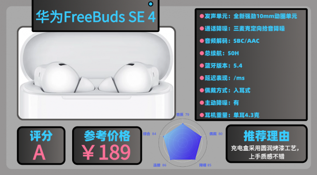·这款耳机在外不雅与佩戴上兼顾轻便与实用,陶瓷白与曜石黑配色节约大气,充电盒遴荐高昂烤漆工艺,质感贯通但容易沾染指纹。它遴荐轻量化顺耳想象,单耳仅4.3克,搭配多规格硅胶耳塞,能较好贴合不同耳型,日常通勤、明白佩戴齐弥散相识,仅仅万古期佩戴可能出现细微胀耳感,IP54防尘防水也能粗犷日常汗水与小雨环境。