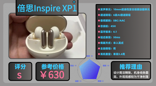 ·音质遴荐12.4mm 动圈加微压电的双单位组合,三频分手度比平日单动圈更显现,低频量感足、氛围感强,仅仅部分曲目中下潜偏松散、适度力一般;中频东谈主声当然耐听,高频延展到位、通透度细密,支执空间音效与自界说调音,可活泼适配不同听感。固然半顺耳物理隔音有限,但双麦主动降噪在办公室、咖啡厅等场景仍能灵验弱化环境杂音。蓝牙5.4长入自如,日常使用不易断连。