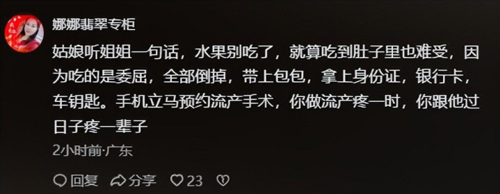 当一个男东谈把持所虽然地把我方的烟酒支出当成必须的铺张,却把妊妇缓解体魄不适的生果当成乱费钱时,这段婚配早就莫得了对等可言。