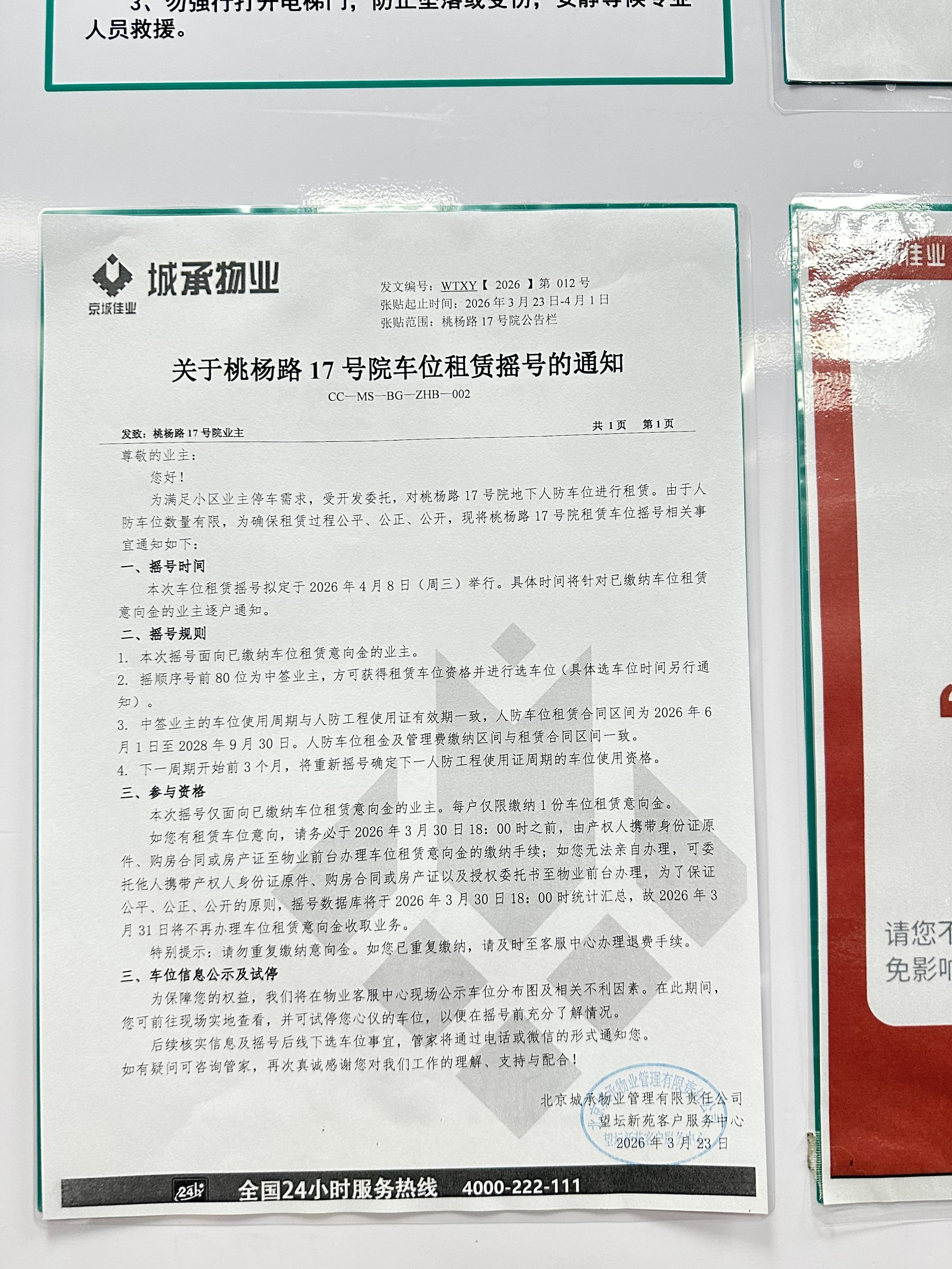 “890个车位,只须80个车位出租,剩下的必须买,这让咱们难以继承!”近日,多位家住东城区永定门外街谈望坛新苑17号院的业主反应,本年3月小区物业发布车位租借摇号申诉,摇号法规前80位的业主将得回租借东谈主防车位的履历,地库中剩下的800多个开发商产权车位,在2029年前边向小区业主销售,每个车位售价40万元掌握。要是业主既没摇到号租车位又不肯花高价购买车位,其车辆将无法干涉小区停放。有业主认为,17号院有900余套回迁房,要是按照开发商的条目,大部分业主需要花几十万元购买车位,价钱过高。为此记者伸开探询。