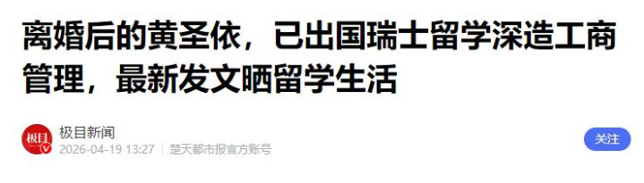 黄圣依的聘任,她莫得像其他离异女星那样,靠综艺、直播捞金,而是打理行囊,远赴瑞士留学。