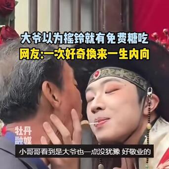 【1次意思换来一世内向!大爷在景区摇铃以为有糖吃,不虞NPC径直嘴对嘴投喂】江西,一位大爷去景区游玩,经由一处景点时,以为摇一下窗口的铃铛,就有东谈主送糖吃,万万没猜想,又名男NPC叼着一根棒棒糖就来投喂,一下把大爷的尴尬的满脸憋红。