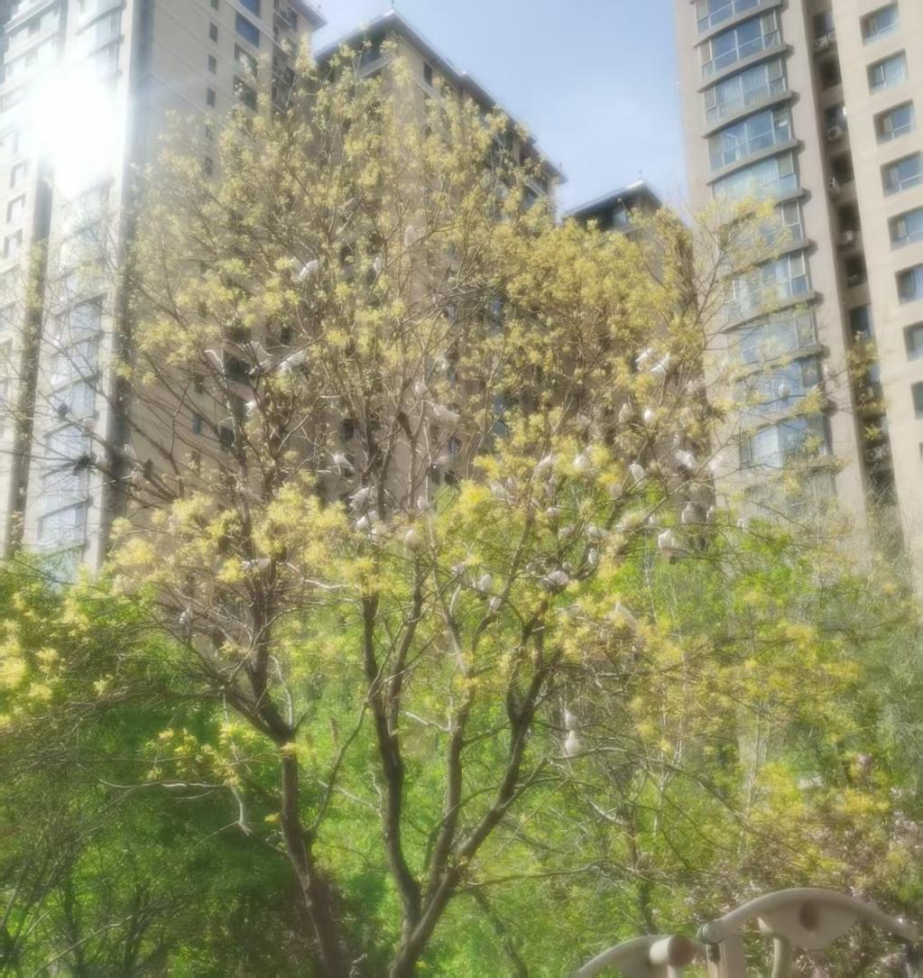 4月11日志者来到现场。在小区院子里,不少树上皆栖息着鸽子,大地上多处有鸽粪的印迹。从住户家中看去,鸽子长久停留后留住的印迹更是荡气回肠,许多住户家的窗户玻璃上皆沾着鸽粪。