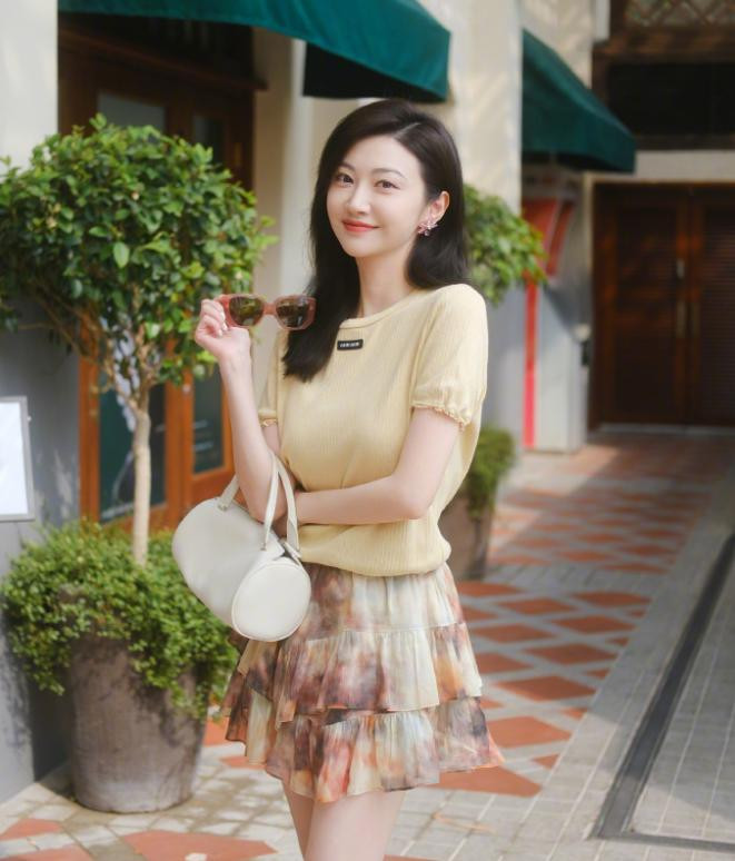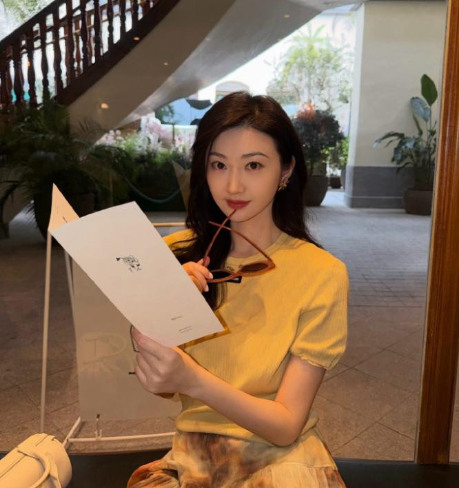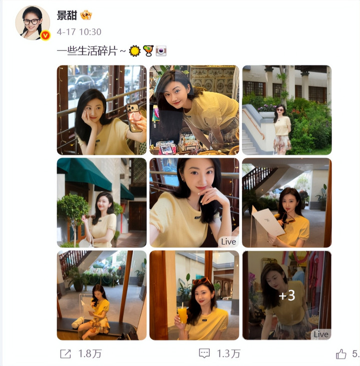 4月17日,景女士在酬酢账号上,共享了一组我方出去玩的相片,画面中,她穿了一件鹅黄色的上衣,
